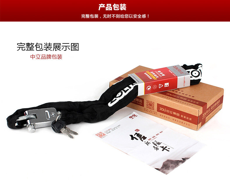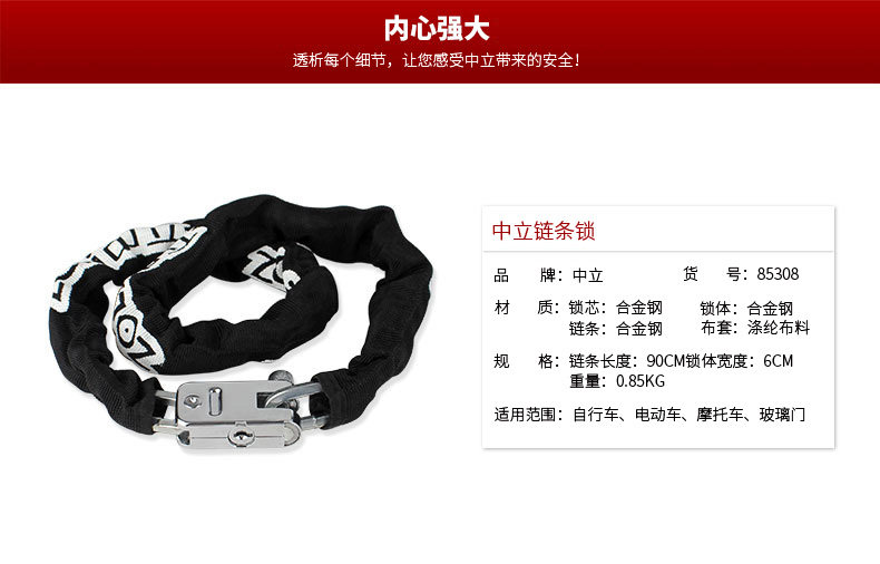 中立 抗剪山地自行车锁链条锁 电瓶锁电动车单车锁 摩托车防盗锁