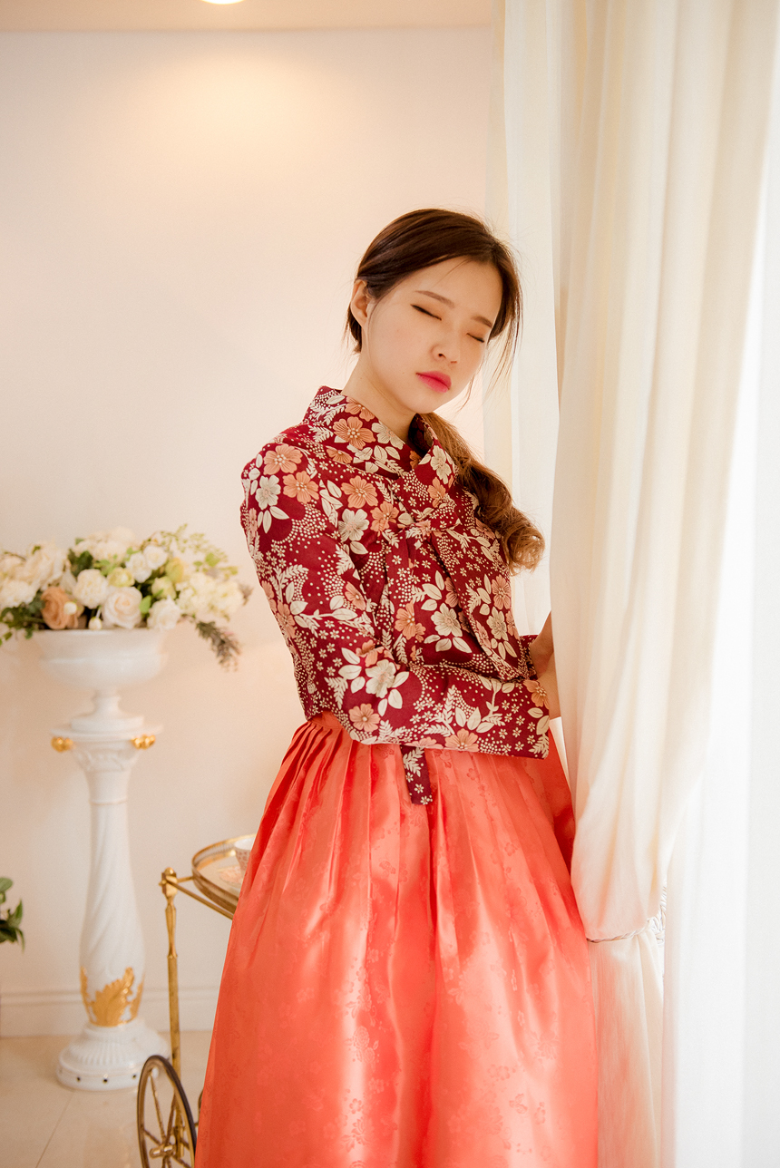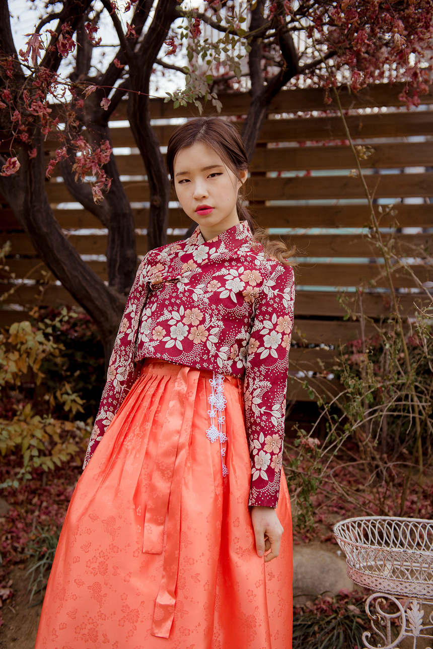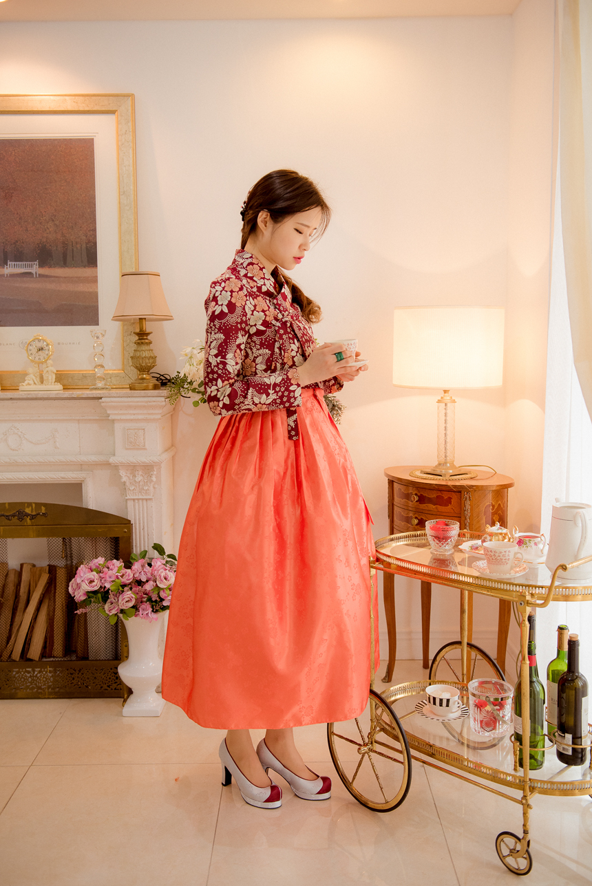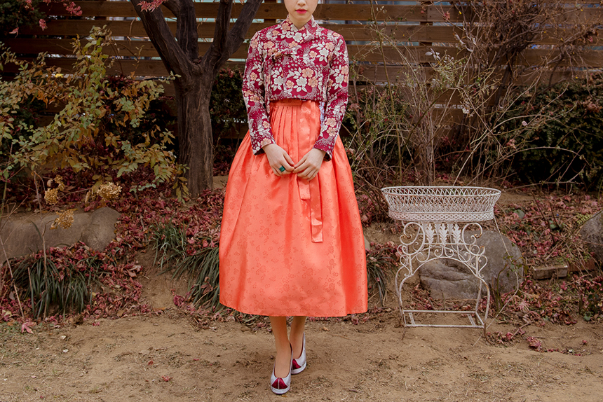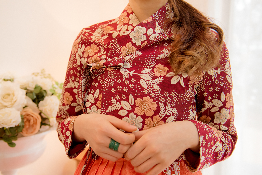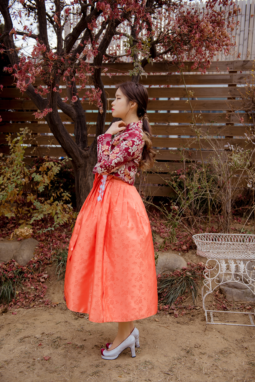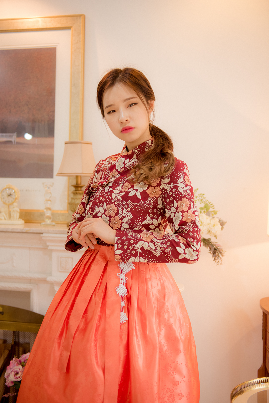 생활한복 저고리 몽환의숲 레드오렌지