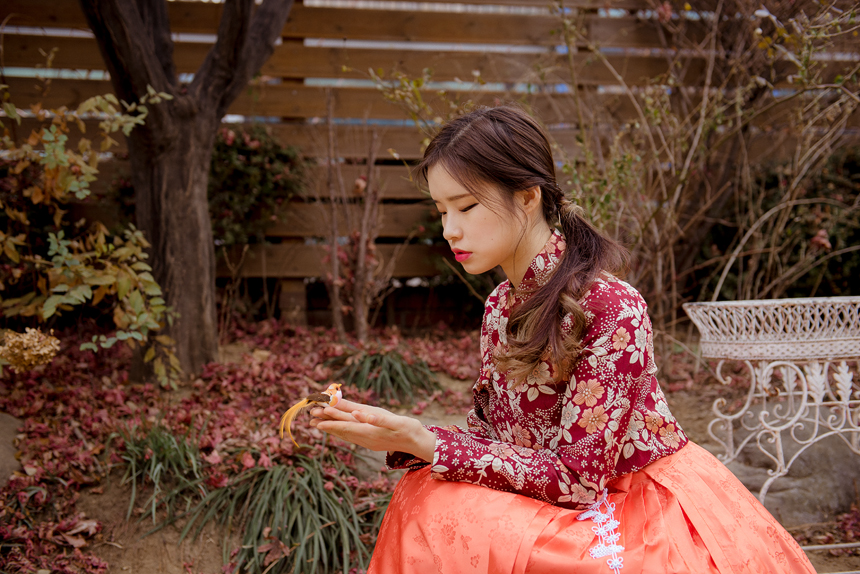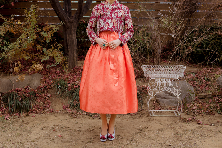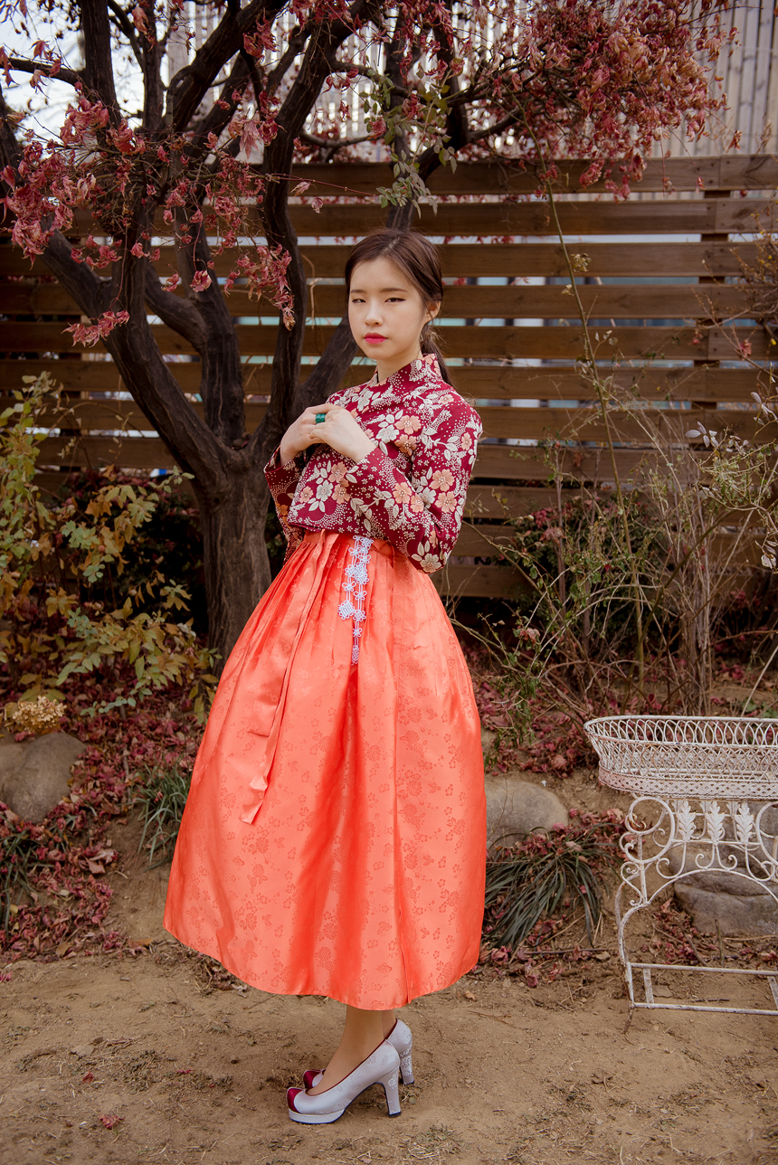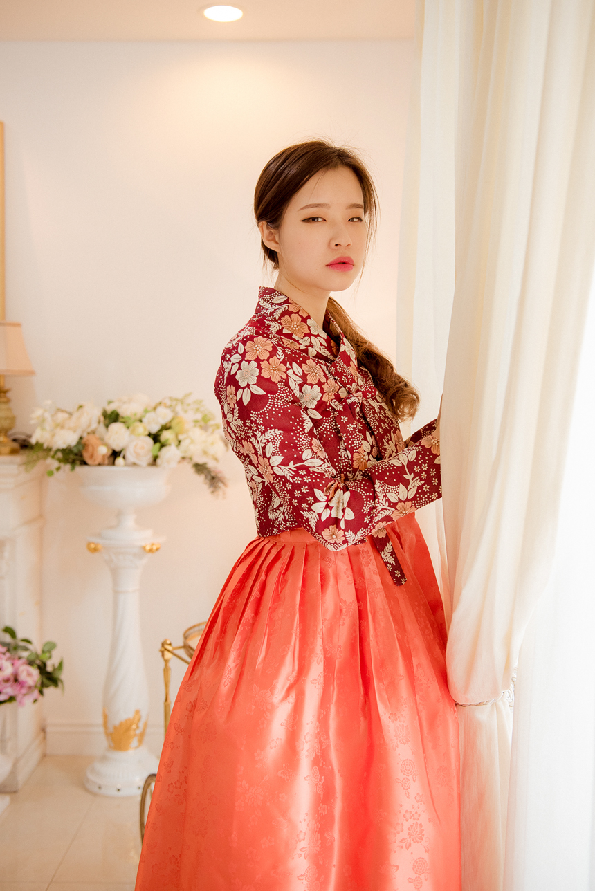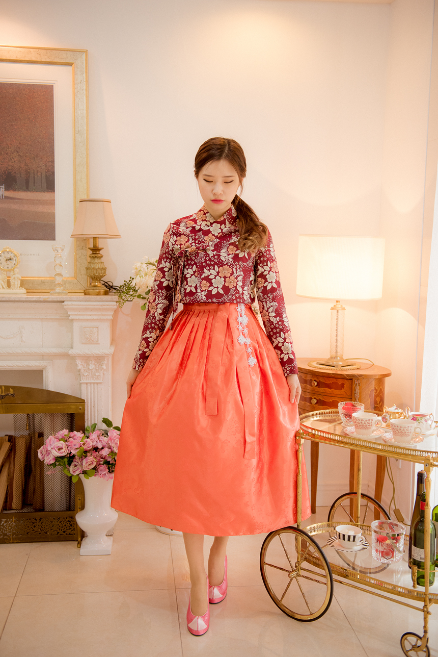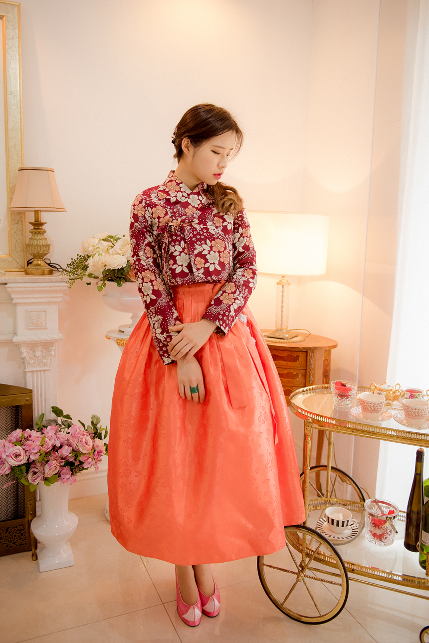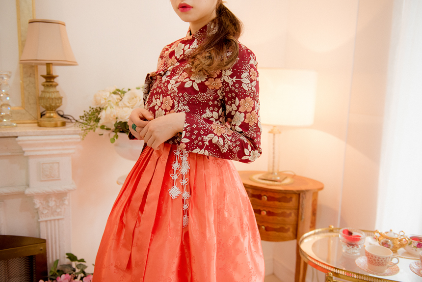생활한복 저고리 몽환의숲 레드오렌지