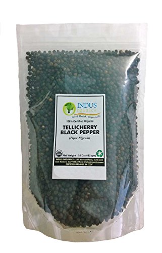 Indus Organics Tellicherry Black Peppercorns, Refill Bag, 1 Lb, Premium Grade, High Purity, Freshly Packed