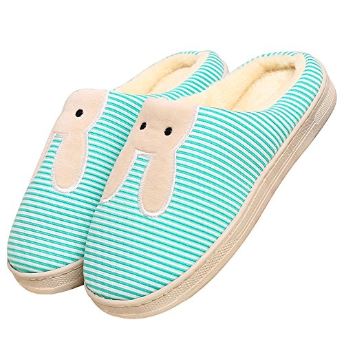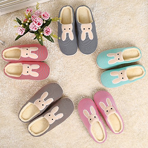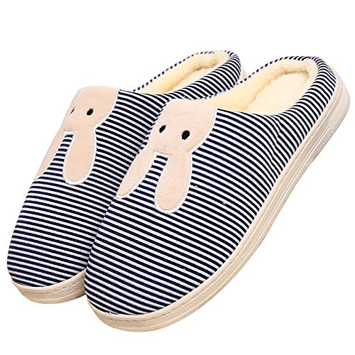-. Feature : CUTE SLIPPER WITH COVETED STYLE: the cuteness-overloading version is detailed by a vivid bunny design on the stripe upper that lends enchanting personality to these must-have shoes, perfect for adding whimsical style in the cold winter / COZY & WARM : styled in a smooth silhouette, house slippes come with a fluffy lining to block cold outside and pamper toes in pleasant warmth, easily becoming your indoor favourites. / EXQUISITE & COMFY: sophisticated craftmanship and defined by the playful bottom texturing and profiled in a noticeable stitching detailing, sending pillow-like comfort the moment when slip home shoes on. / ANTI-SLIP SLIPPERS: we utilize grippy rubber sole to bolster security for your footing / UNIVERSAL & EASY-MATCHING: The tempting look makes warm slippers for both indoor and outdoor use, suitable for the bedroom, living room, kitchen, study, street, park, etc and great to pair with any casual wear.