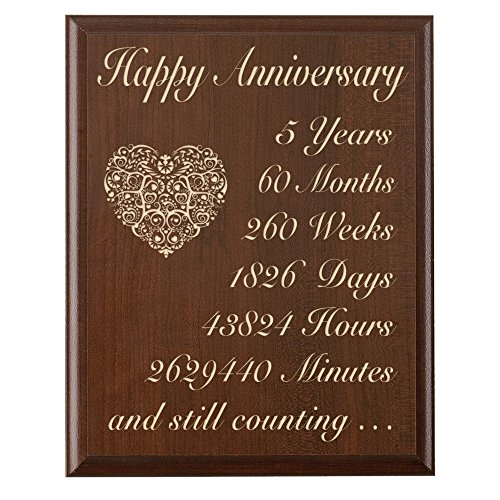 5th Wedding Anniversary Wall Plaque Gifts for Couple 5 Year Anniversary Gifts for Her, Fifth Wedding Anniversary Gifts for Him Wall Plaque By Dayspring Milestones (Cherry, 9" X12")