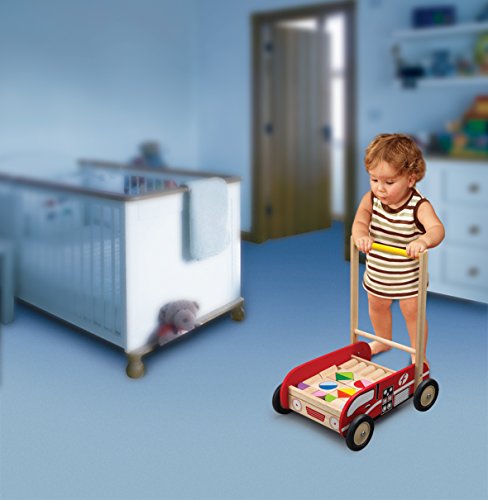 - Feature : Unique friction system allows you to control the speed / A fire truck load of 36 wooden blocks are included for hours of building play / Helps develop walking skills / Small chalkboard area on the side panel to write the child's name / Made in Thailand from environmentally friendly rubberwood and strictly using Non-Toxic Paints, Dyes and Lacquers and Formaldehyde Free Glue. Packaging is made from at least 70% recycled paper. / Made from rubberwood and non-toxic water based paints as well as biodegradable fabrics