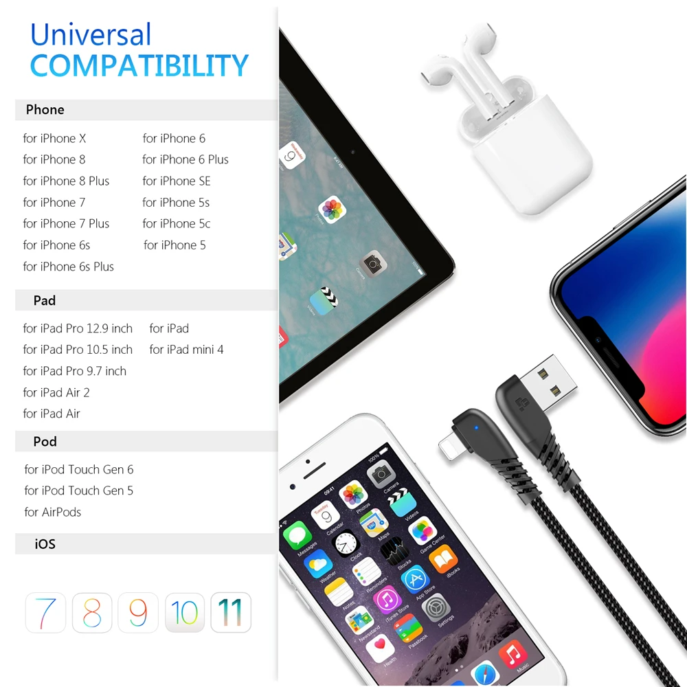 Usage:charger cable for iPhone 8/8 Plus/X/7/6/6s/5s/SE