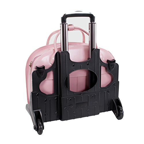 -. Binding : Electronics -. Brand : McKleinUSA -. Color : Pink -. Feature : Quick access front pocket is secured with a key lock / Interior organizer with storage space for media devices, business cards, key holder and pens / Removable high-density laptop sleeve that protects laptops up to 15.4" in size / Dual Laptop Protection System uses a high-tech ABS honeycomb frame to protect laptop from exterior impact / Smart Attachment Strap allows transport on extended handles of other rolling cases and lage -. Label : McKlein -. Manufacturer : McKlein -. Model : MK-94369 -. PackageQuantity : 1 -. ProductGroup : PC Accessory -. ProductTypeName : CARRYING_CASE_OR_BAG -. Publisher : McKlein -. Studio : McKlein -. Title : McKlein Glen Ellyn Rolling Leather 15.4" Laptop Brief - Pink