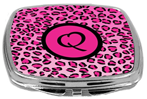 Rikki Knight Compact Mirror, Letter q Initial Hot Pink Leopard Print