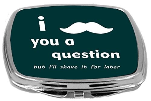 Rikki Knight Compact Mirror, I Mustache You a Question Black On Dark Green