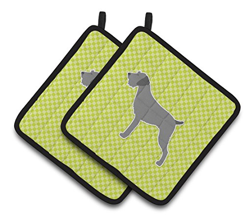 Caroline's Treasures German Wirehaired Pointer Checkerboard green Pair of Pot Holders BB3811PTHD, 7.5HX7.5W, Multicolor