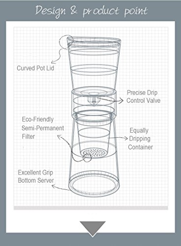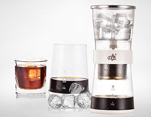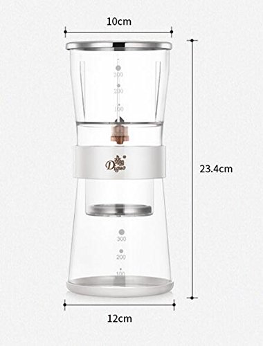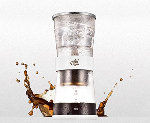 -. Brand : Diguo -. Color : Clear -. EAN : 0716670467394 -. Feature : Create a delicious cold brewed coffee, that guarantees much lower acidity than regular coffee. Takes about 2-3 hours for the full 2 cups. / Adjustable dripper lets you control the quality of the coffee. / Plastic top chamber and glass carafe, ensure cold fresh tasting coffee. The stainless steel filter will leave you with a clear ground free cup / 300ml capacity produces 2 coffee cups. You can use it for tea as well. / Create a delicious coffee like a pro. -. ProductGroup : Kitchen -. ProductTypeName : KITCHEN -. Title : Diguo Cold Brew Coffee Dripper Adjustable Ice Drip Dripper Glass Carafe Duth coffee maker -. UPC : 716670467394