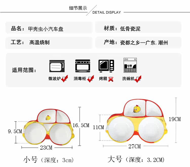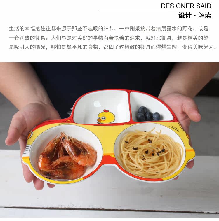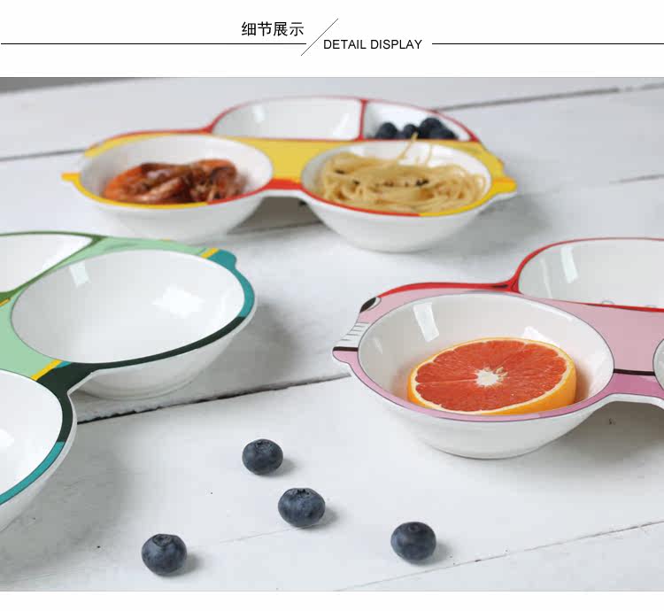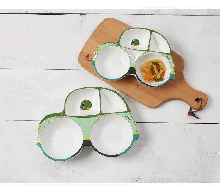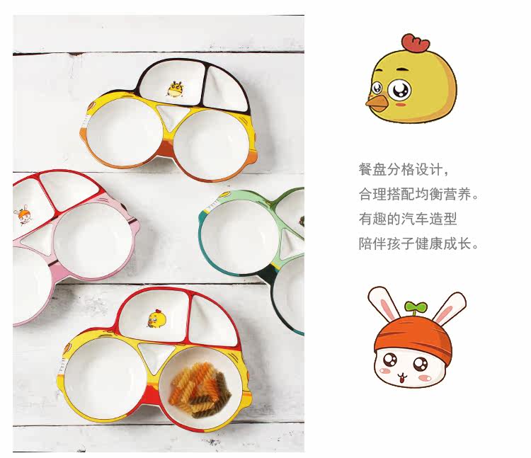 宝宝餐盘分隔盘创意卡通儿童汽车餐具可爱家用陶瓷早餐分格菜盘碗