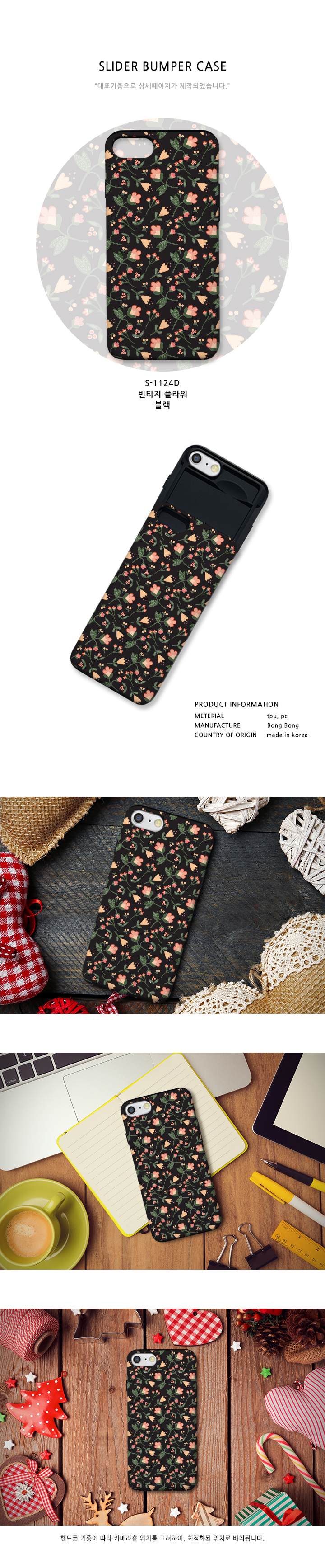 iphone7+ vintage flower black S1124D slider