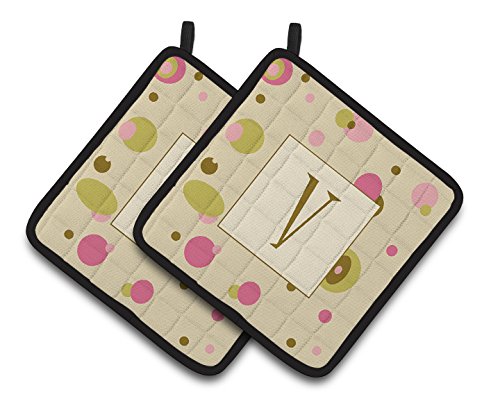 Caroline's Treasures Letter V Initial Monogram - Tan Dots Pair of Pot Holders CJ1004-VPTHD, 7.5HX7.5W, Multicolor