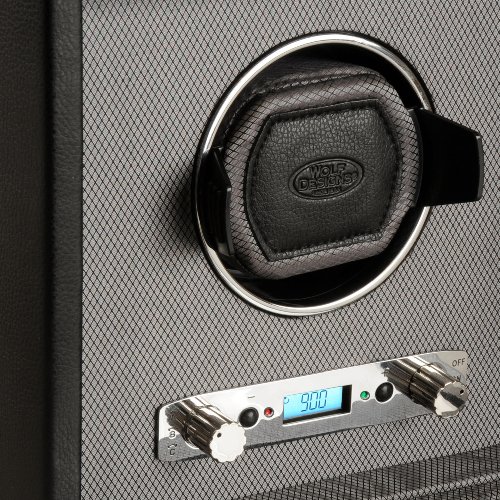 - Feature : Backlit LCD display screen powers on when control knobs or chrome plate is touched; will stay illuminated for 10 seconds / Rotation options: incrementally from 300-1200 turns per day. The LCD screen provides a countdown of remaining rotations in daily cycle. / Watch cuff has been designed to accommodate larger, heavier watches and will "lock" into the winder drum for a secure fit / Turns clockwise, counter-clockwise, or bi-directionally with the option to run the unit on 33V adapter (included) or D-Cell batteries / Storage for up to five additional watches and a removable travel case for accessories and one watch storage
