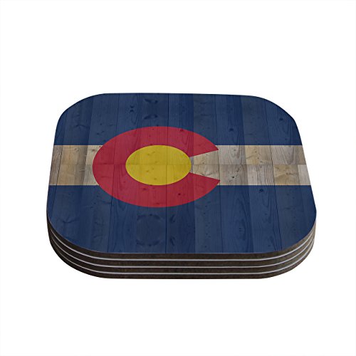 KESS InHouse Bruce Stanfield "Flag of Colorado Blue Red" Coasters (Set of 4), 4 x 4", Multicolor