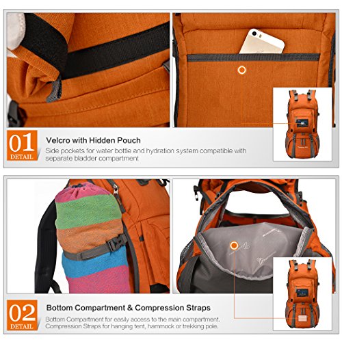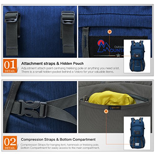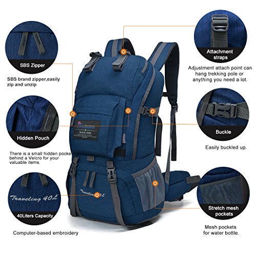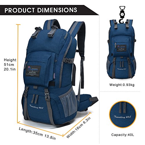 7.Bottom Zipped Access:The bottom zippered access which can easily access to the main compartment. Product Parameters Capacity:40L (2,440 cubic inches) Item Weight: 2.1lbs (0.93 kg) Product Dimensions: 21.7 x 13.8 x 9.8 inches (55 x 35 x 25 cm) Front Zipped Pocket:7.4x6.6x1.5 inches(19x17x4cm) Middle Zipped Pocket:6.6x8.2x1.1 inches(17x21x3cm) Internal Pocket(The Pocket Behind Middle Pocket):8.6x5.5 inches(22x14cm) Side Mesh Pocket:5.9x5.9 inches(15x15cm) About returns policy and our services Please feel free to leave us a message if you have any questions. We will reply to you within 24 hours and offer you our best services.