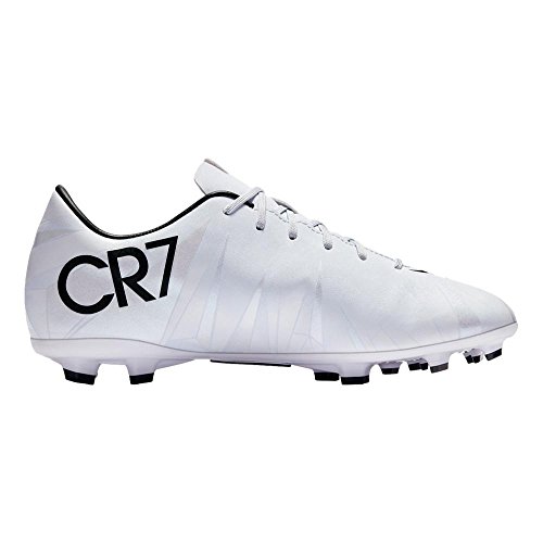 Studio : Nike Publisher : Nike Binding : Apparel Product Description Your young star will get to the goal and make the game changing play in the Mercurial Vapor 11. A synthetic leather upper with embossed horizontal ridges and low-profile toe box provides them with excellent control, ball touch and ability to get under the ball. The Nike® Mercurial Vapor XI CR7 FG soccer cleat has a contoured perforated sockliner that delivers underfoot comfort while a compressed nylon plate with FG cleats offers unmatched traction and support on the pitch. 0