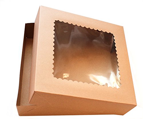 Bakery Boxes with Clear Window (Pack of 10) - 10" x 10" x 2 1/2" - Brown Kraft Paper Box for Pies, Cookies, Cakes, or Cupcakes - Superior Quality