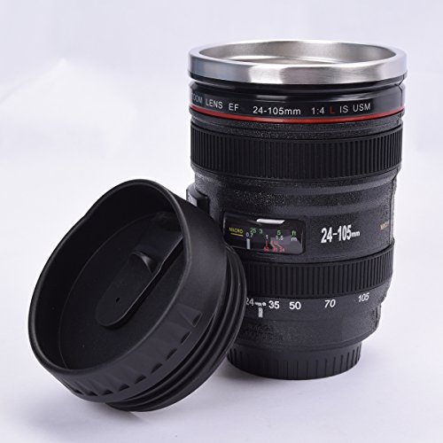 The novelty creative cup design is a replica Camera Lens Model EF 24-105mm f / 5L IS USM Lens, with 13.5oz / 400ml Capacity when filled up, 11oz if covered with lid