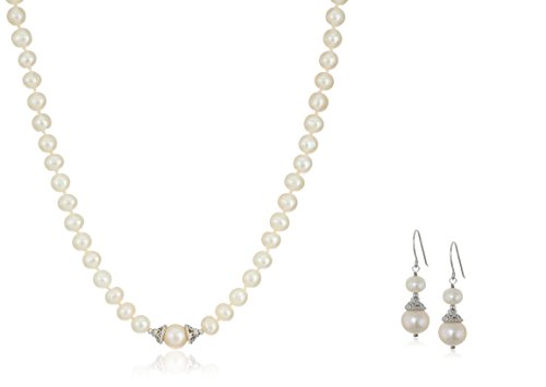 Hand Knotted White Genuine Freshwater Cultured 6mm Pearl Necklace and Drop Earrings Jewelry Set