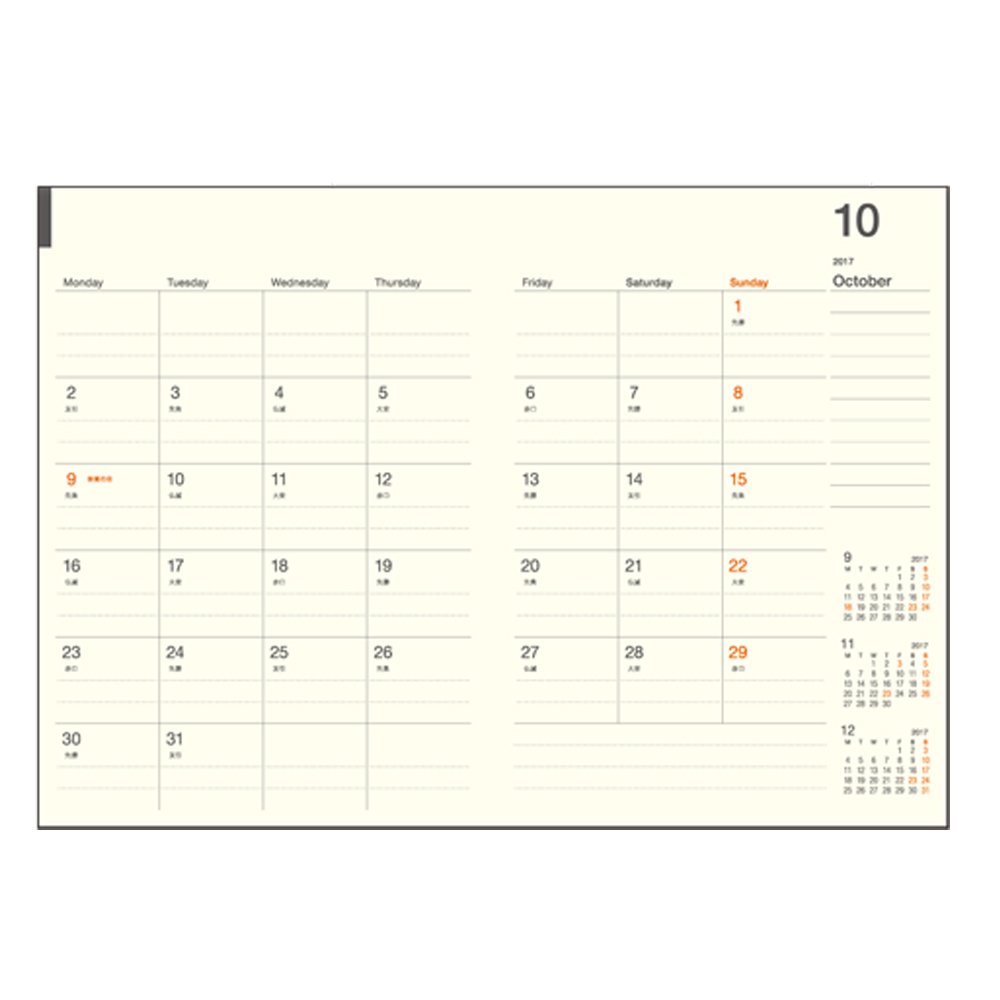 Cream book form paper 2018 - 2019 spread facing calendar