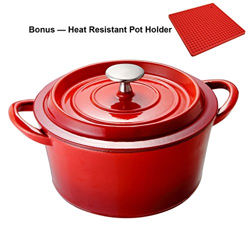 -. Title : Unicook Enameled Cast Iron Dutch Oven,2.5-Quart, 20cm Diameter,Bonus of 1pc Heat Resistant Pot Holder,Black Matt Enamel Interior