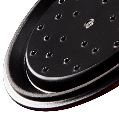 -. Feature : Cast iron cookware ensures even heating and excellent heat retention / Great for making soups, stews, braising meats, baking, frying and more / Low to medium heat only; oven-safe to 450-degree F / Stainless steel knob and cast loop side handle / Easy to clean, washing by hand recommended
