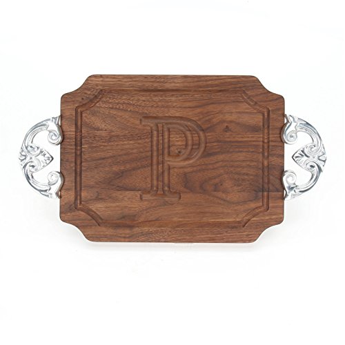 BigWood Boards W300-CL-P Cutting Board with Handles, Monogrammed Wedding Gift Cutting Board, Small Cheese Board, Walnut Wood Serving Tray, "P"