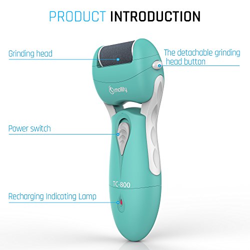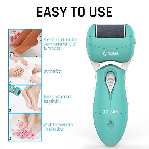 Electric Callus Remover - The Best Rechargeable Pedicure Foot Care Shaver File Tool by Mollify - Remove Cracked, Dead, Thick Hard Skin and Reduce Calluses...