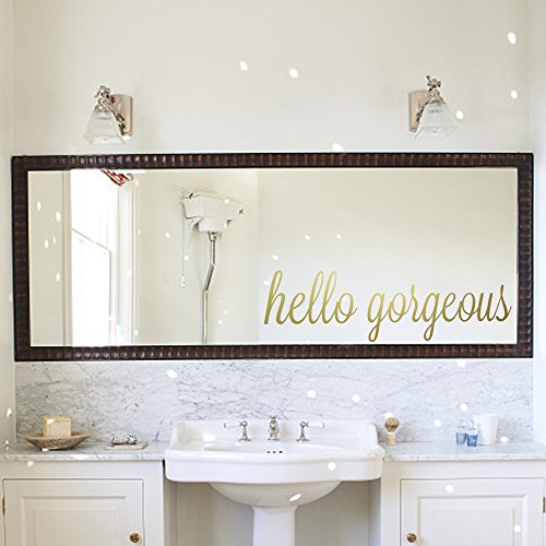 Hello Gorgeous Quote Mirror Decal Quotes Vinyl Wall Decals Bathroom Wall Sticker Home Decor (Hello Gorgeous Gold)