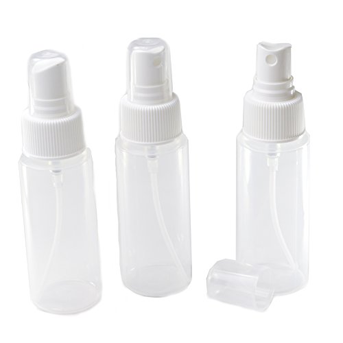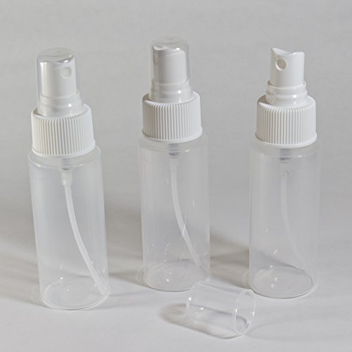 2oz Clear Plastic Spray Mist Bottles - Set of 3 - Empty Bottles with Pump Spray Cap - Travel Size 2 Ounce - By Chica and Jo