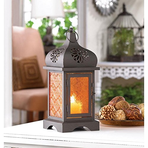 -. Feature : Like a temple tower at sunset, the pressed glass panels of this metalcraft lantern blaze with a mystical desert glow. simply set a candle inside to set the scene for after-dark magic! / Beautiful, functional and realistic, this decorative sunset temple moroccan candle lantern will add style, ambiance to any outdoor space. / With our impression sunset temple moroccan lantern, you'll find all you need to dim the lights and turn on the atmosphere. / This iron candle lantern is fantastic for decorating indoors or out. sits on any surface, or can be hung using the integrated hanging loop / This candle lantern weight 1.6 pounds and the dimensions is 4.75" x 4.75" x 11.8" . the candle is not included.
