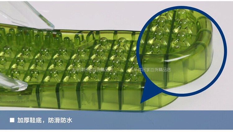 产品采用尖珠按摩设计给脚部穴位按摩让辛苦一天的脚放松放松...而且是镂空设计不积水永远干爽的感觉。