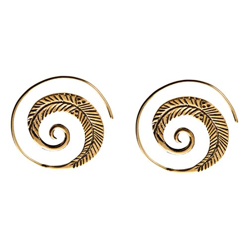 This is a beautiful pair of spiral leaf handmade brass tribal earrings. Fit normal pierced ears. Diameter 26 millimetres. Weight 6.78 grams.