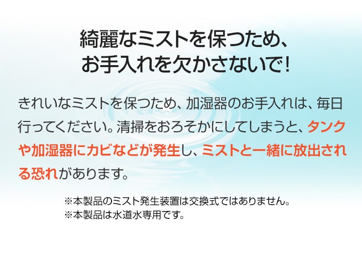 動作時間 最大約15時間(加湿量最大時)