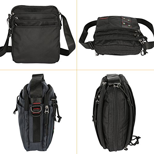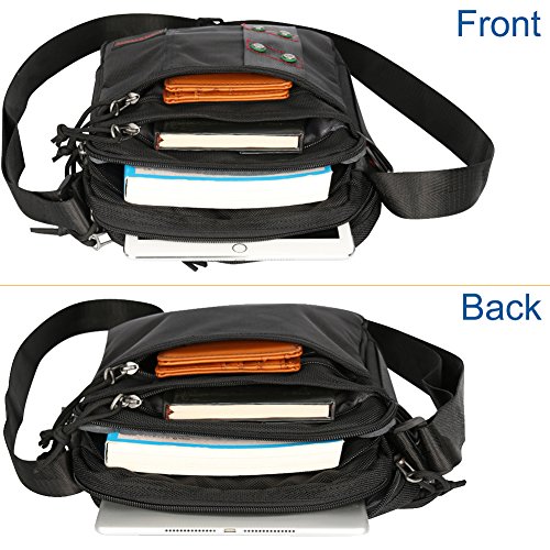 -. Feature : Design with Heart. Not too many medium shoulder bags have Multiple compartments like this one! Plenty of considerate compartments for iPad or tablets, phone, gadgets, books, pens, cards. Easy access to each compartment / TOP Class Material: Made of soft and lightweight water-resistant Polyester Oxford material, build in top-quality zippers and durable strap clip, 100% Lifetime Guarantee / Size: 8.3"(w) x 9.6"(h) x 3.2"(d) inches, or 27 x 31 x 14 cm fits up to 12 inch laptop or tablets. Weight: 1.1 pound or 0.52 KG / Designed for COMFORT. No more aching your neck, back & shoulders, no need to put things into your limited pants pockets. Ergonomically designed, padded, breathable strap makes you forget you're even wearing a bag / Versatile Bag. Great for Work ,Travel ,School, Gym, or Outdoors. Also perfect for using as a diaper bag.