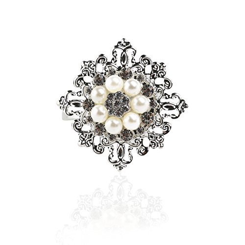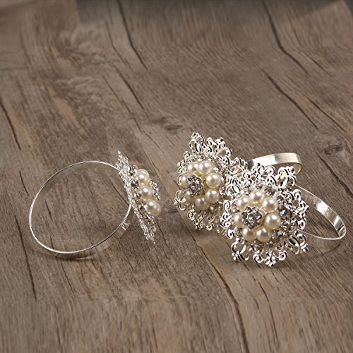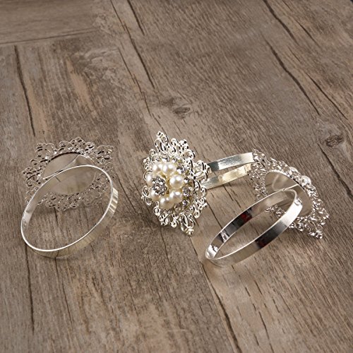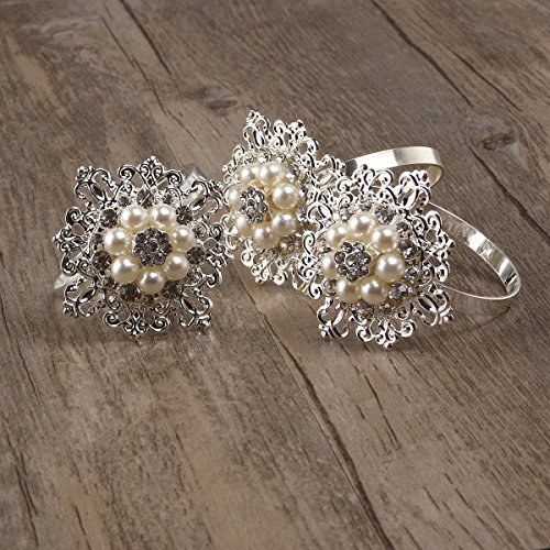 Package Including 10 * Floral Napkin Rings with Faux Pearl Rhinestone (Silver) 0