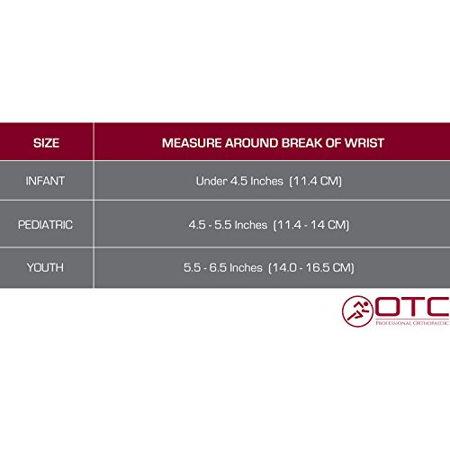 -. Binding : Health and Beauty -. Brand : OTC -. Color : Left -. EAN : 0048503032234 -. Feature : Sizing information: Measure around break of wrist. Infant is under 4.5 inches. Pediatric is 4.5 to 5.5 inches. Youth is 5.5. to 6.5 inches. / Holds the wrist comfortably in a neutral position to promote healing and minimize pain. / Rigid ultra lightweight splint. / Soft lined interior is breathable for wearing comfort. / Easy to slip on and slip off using only one hand. -. IsAdultProduct : 0 -. Label : Surgical Appliance Industries -. Manufacturer : Surgical Appliance Industries -. MPN : 0322/L-Y CA -. NumberOfItems : 1 -. PackageQuantity : 1 -. PartNumber : 0322/L-Y CA -. ProductGroup : Health and Beauty -. ProductTypeName : HEALTH_PERSONAL_CARE -. Publisher : Surgical Appliance Industries -. Size : Youth -. Studio : Surgical Appliance Industries -. Title : OTC KidsLine Wrist Splint, Soft Foam, Adjustable, Pediatric Support (Youth Left - 5.5"-6.5") -. UPC : 048503032234