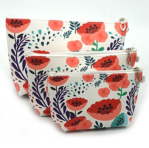 XICHEN 3 PCS cosmetic bag waterproof cosmetic bag large capacity pu leather, Bathroom, Storage (3 Sizes) (Orange sun flower)