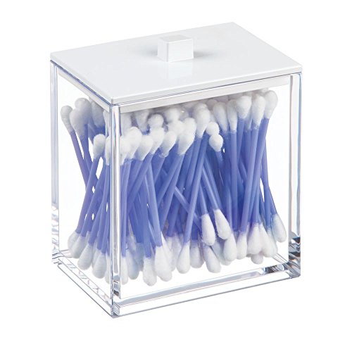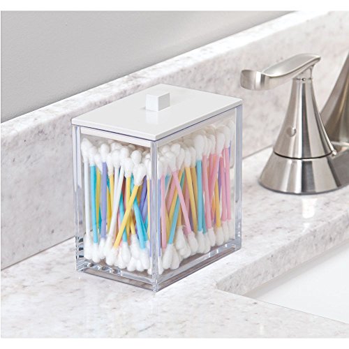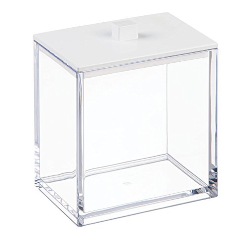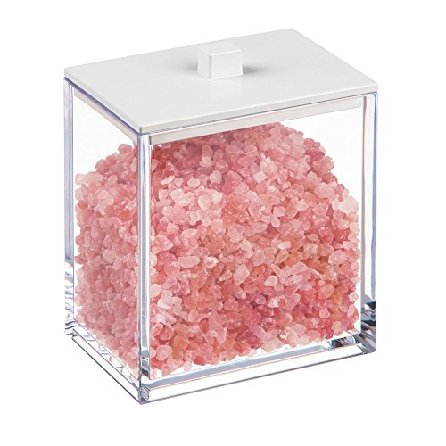 InterDesign Clarity Canister for Bathroom Storage of Cotton Balls, Cosmetics, Cotton Swabs, Bath Salts - Clear/Matte White