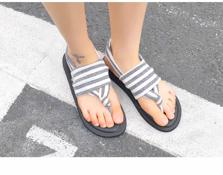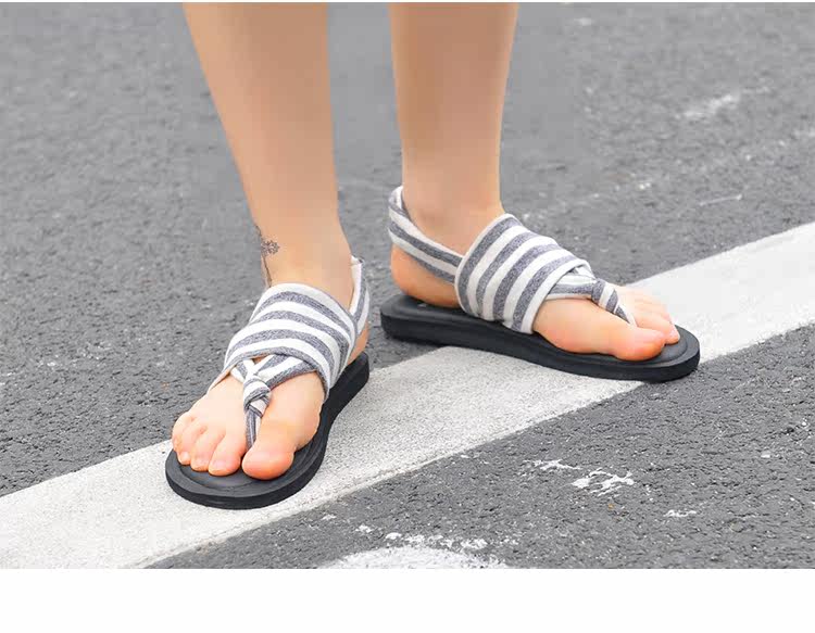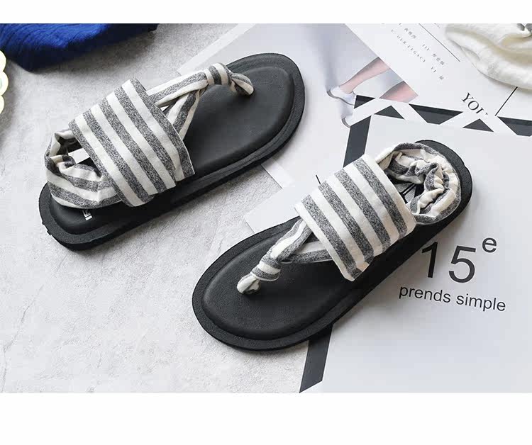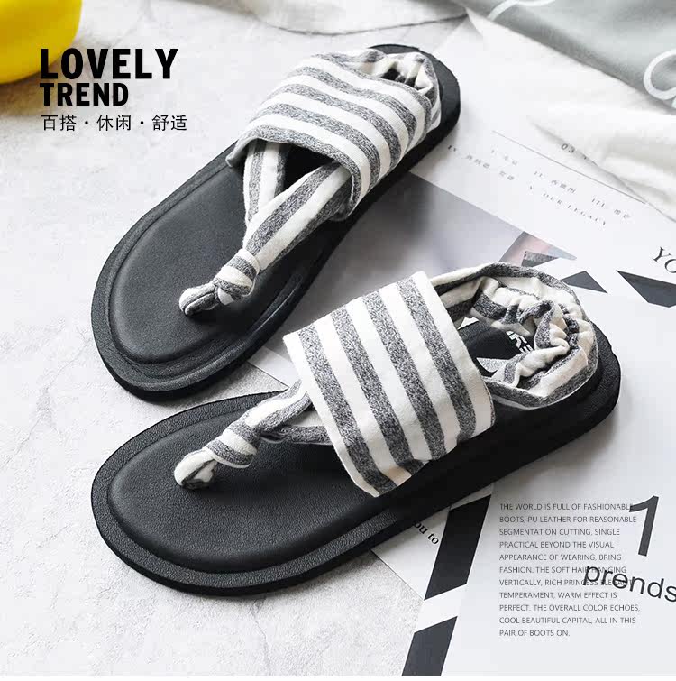 欧美夏季女士夹趾拖鞋百搭平底防滑韩版学生棉布夹趾瑜伽人字凉鞋