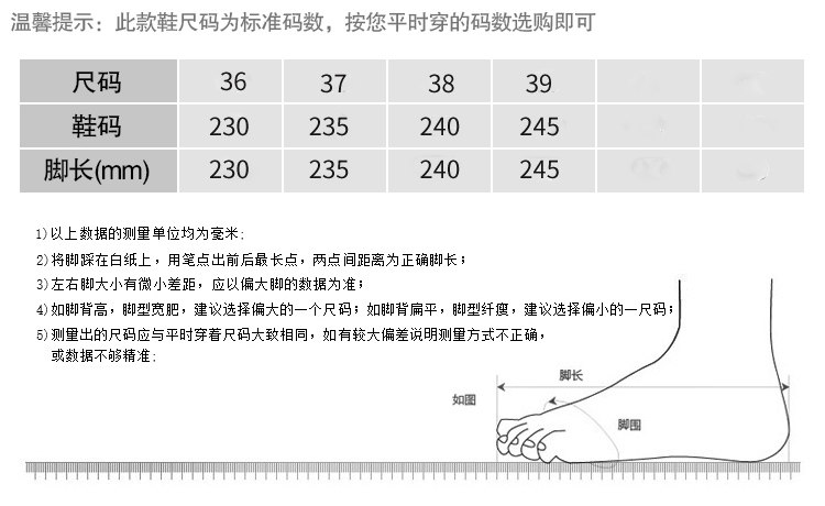 This shoes is standard size.If your foot are chubby type,you may choose one size bigger.Please measure and choose carefully before place the order,NOT exchange are allowed !