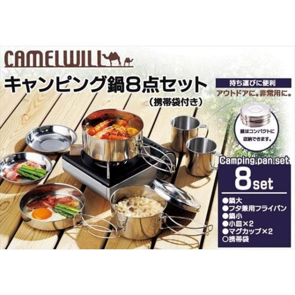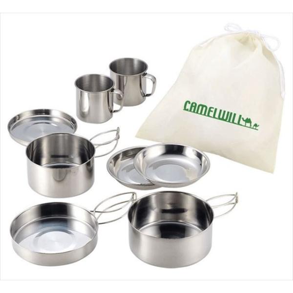 ステンレス製キッチン調理道具セット(鍋・皿・フライパン・マグカップ)アウトドアに!・アウトレジャー 釣り ドライブ ツーリング・アウトドアや非常時に使える調理道具をセットにし、鍋大に鍋小と皿が入るので、コンパクトに収納できます。・非常時等さまざまなシーンで大活躍・直火専用になります・梱包サイズ 23.6cm×16.4cm×8.9cm・セット重量 750g・鍋大 ステンレス鋼(クロム13%)(底厚0.4mm)・フタ兼用フライパン ステンレス鋼(クロム13%)(底厚0.4mm)・鍋小 ステンレス鋼(クロム13%)(底厚0.4mm)・フタ兼用皿 ステンレス鋼(クロム13%)(底厚0.4mm)・小皿×2 ステンレス鋼(クロム13%)(底厚0.3mm)・マグカップ×2 ステンレス鋼(クロム13%)(底厚0.38mm)・携帯袋 不織布