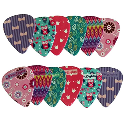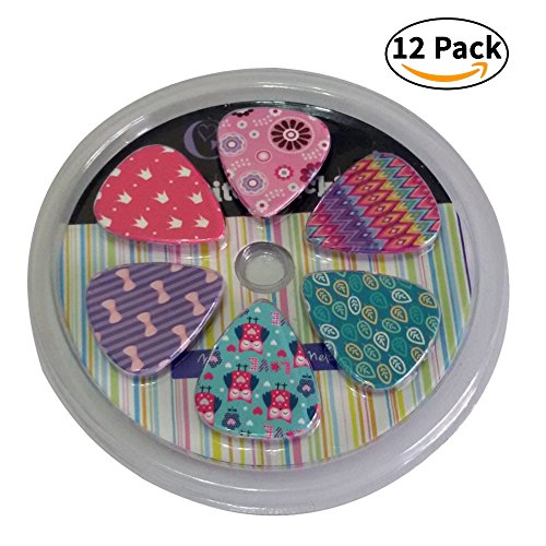 Girly Guitar Picks Set - Medium Celluloid 12-pack - Unique Colorful Designs - Best Gifts for Girls Kids Teens Daughter Granddaughter Women - Thanksgiving Christmas New Year Holidays Presents