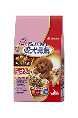 原材料:穀類(トウモロコシ、小麦粉、コーングルテンミール、パン粉、コーングルテンフィード、フスマ等)、肉類(チキンミール、ビーフミール、チキンエキス、ササミパウダー等)、油脂類(動物性油脂、植物性油脂)、魚介類(フィッシュミール、乾燥小魚)、野菜類(ビートパルプ、ニンジンパウダー、カボチャパウダー、ホウレンソウパウダー)、脱脂大豆、ビール酵母、チーズパウダー、ミネラル類(カルシウム、塩素、コバルト、銅、鉄、ヨウ素、カリウム、マンガン、ナトリウム、リン、亜鉛)、ビタミン類(A、B1、B2、B6、B12、C、D、E、K、コリン、ナイアシン、パントテン酸、ビオチン、葉酸)、着色料(赤色106号、黄色4号、黄色5号、青色1号)、酸化防止剤(ミックストコフェロール、ハーブエキス)