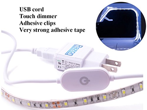 Razon Sewing Machine LED Light, 6.6ft Cord with Touch Dimmer and USB Power Supply, 5pcs Adhesive Clips, Cold White with 3M Adhesive Tape,without Any Magnets-Fits All Sewing Machines,12 Months Warranty