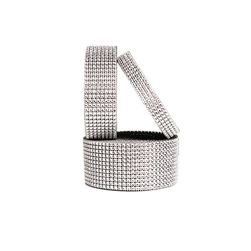 USIX 3/4/6/8/10/12 Rows Artificial Sparkling Glitter Rhinestone Diamond Mesh Ribbon Webbing Wrap for DIY Arts Craft Sewing Wedding Bouquet Cake Birthday Party Decor(Silver,3 Rows-1.5cm/0.59")