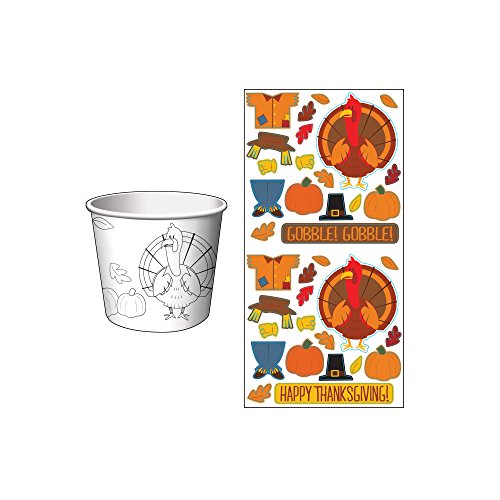 Creative Converting 6 Count Thanksgiving Treat Cups with Activity Stickers, White