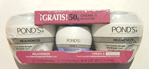 Pond's Rejuveness Anti-Wrinkle Cream 7 oz (Pack of 2) + Crema S Nourishing Moisturizing Cream (1.75 oz)