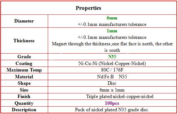 100pcs 6 x 1mm Neodymium Disc Super Strong Rare Earth N35