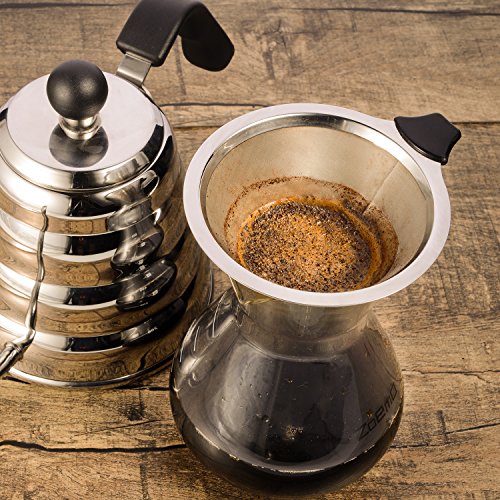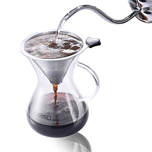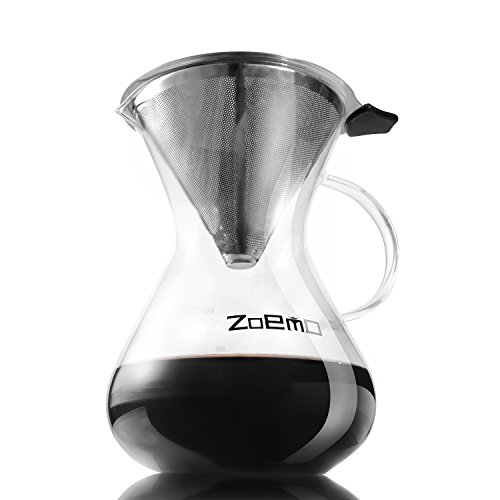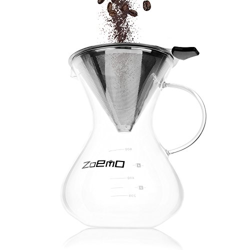 Pour Over Slow Hand Drip Coffee Maker - Anti-Scratch Borosilicate Glass Carafe with Comfortable Handle - Stainless Steel Permanent Mesh Coffee Filter, 22.5oz/660ml